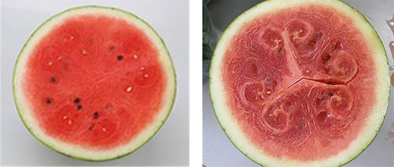 그래서 꼭지와 줄기에는 털이나 가시가 없고 솜털이 적은 수박이 맛있을 확률이 높습니다.