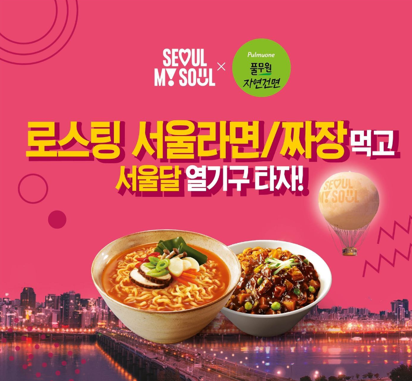 서울라면 출시 100만봉 돌파 및 서울달 개장을 기념하기 위해 풀무원과 함께 구매 고객을 상태로 탑승 티켓 증정 이벤트를 진행하고 있습니다.