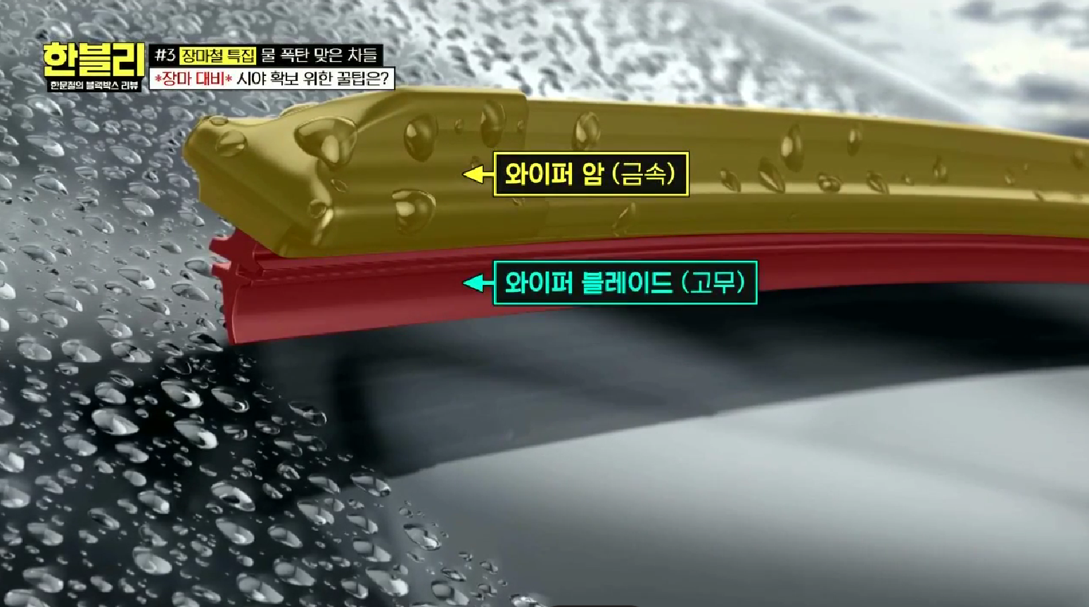 와이퍼는 장마철에 중요한 소모품 중 하나입니다. 와이퍼는 모터에 붙어있는 와이퍼 암과 차량 유리면에 붙어있는 와이퍼 블레이드로 구분됩니다.