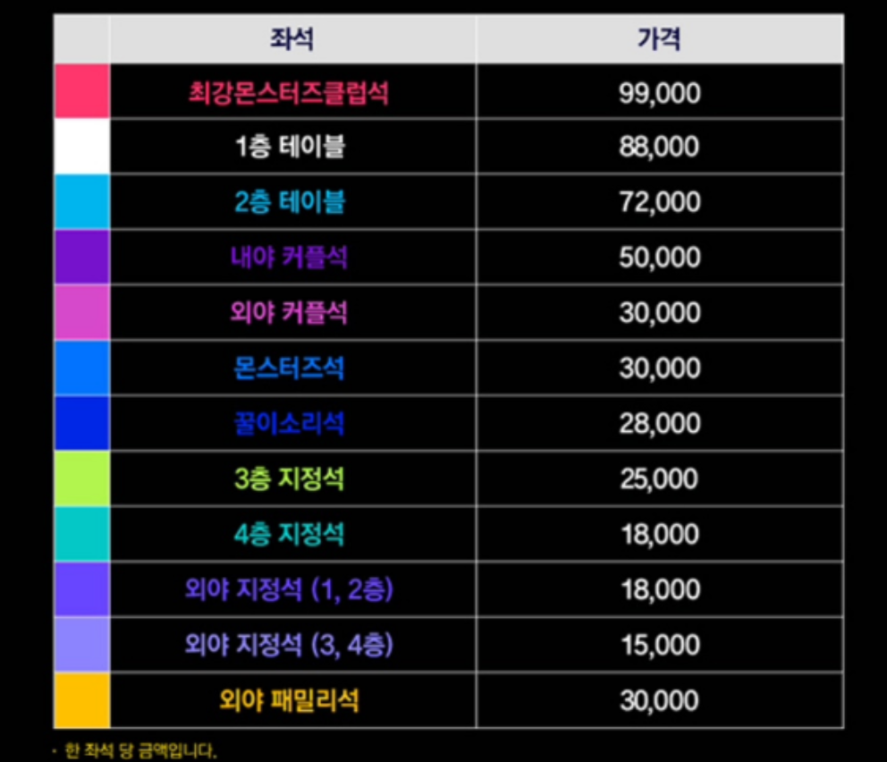 티켓가격이 제대로 나오지 않았지만 저번 2번째 직관 때의 좌석별 가격표를 참고해주세요.