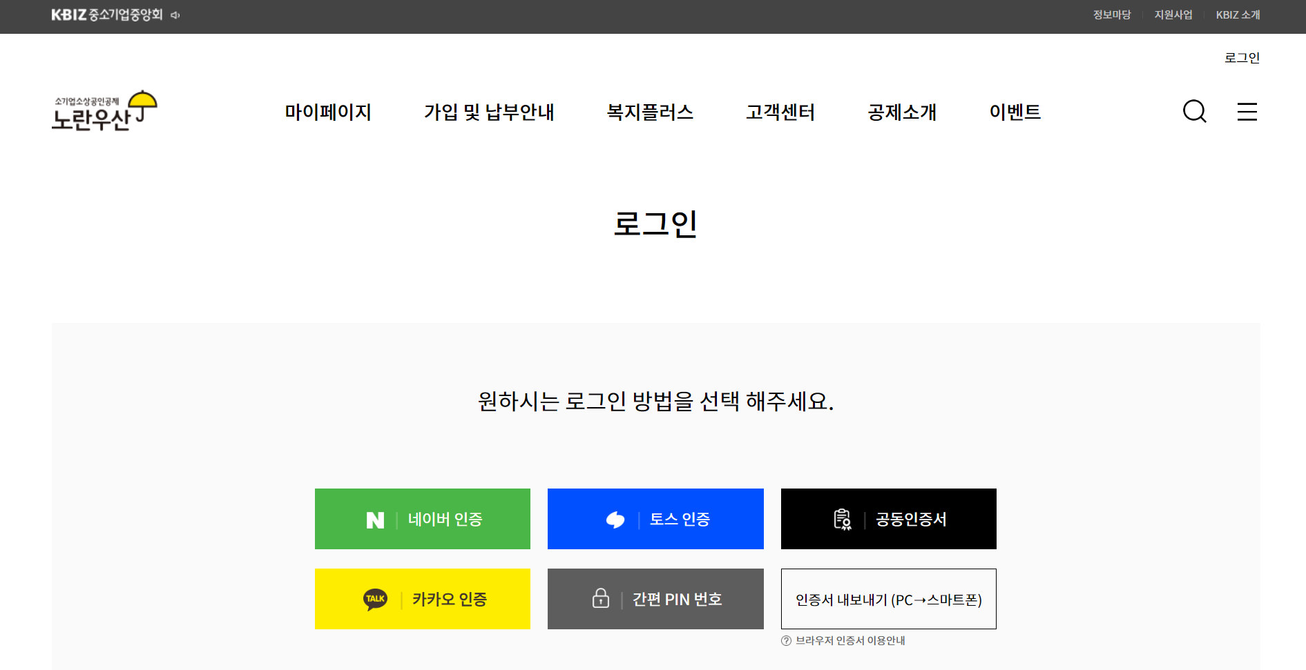 ① 노란우산 공식 홈페이지로 접속