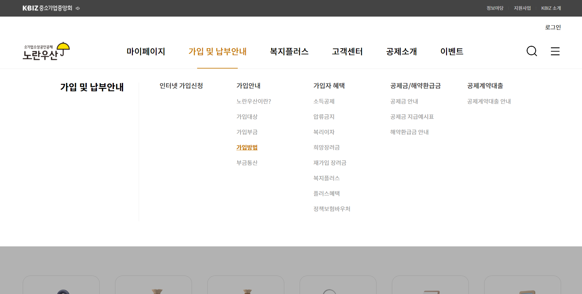 ② 홈페이지 메인화면 상단 카테고리에서 [가입 및 납부안내] → [가입 방법] 클릭